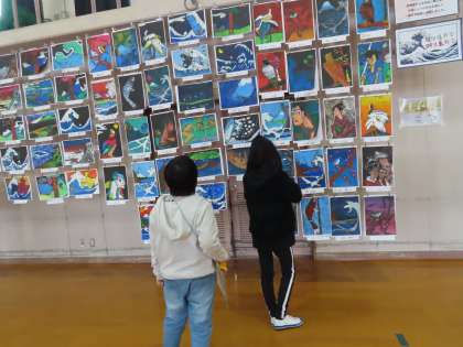 図工展の作品の鑑賞をしました。様々なテーマ,様々な作品があるので,見ているだけで楽しくなりましたね♪