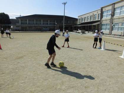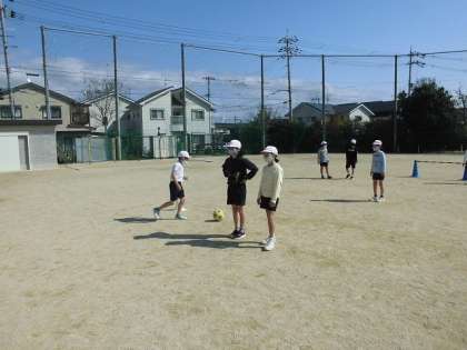 グループごとに,パスをつないだりシュートをしたりする練習をしました。