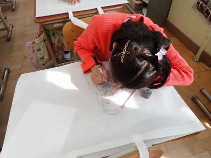 ペンやクーピーを使って,きれいに仕上げていきます。