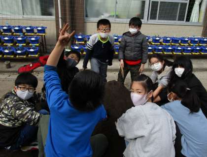 5年生の理科では来年度,理科の実験で使用するジャガイモを植えるための準備をしています。まずは土をつくるところからです。