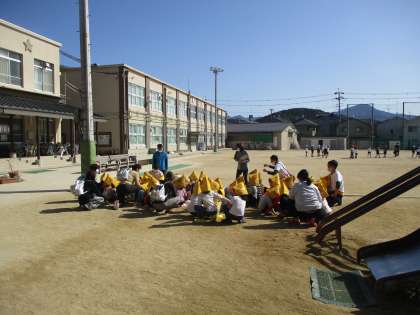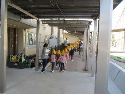 シェイクアウト訓練の後,近くの保育園も運動場に避難してきました。