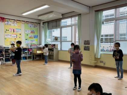 友達とつくった学校のカルタを元気いっぱい読みました!