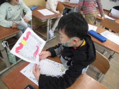 国語の授業で一年間見ていた友だちのいいところや頑張っていたことなどをお手紙にして渡しました。