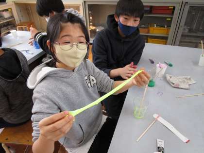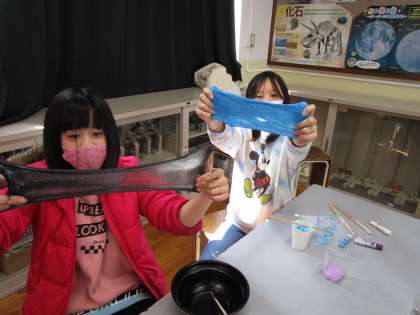 色々な色や硬さのスライムが出来上がりました。