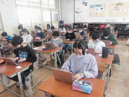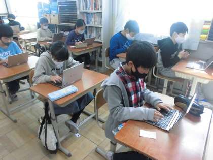 子どもたちは,文字を見ながら,タイピングを練習していきました。