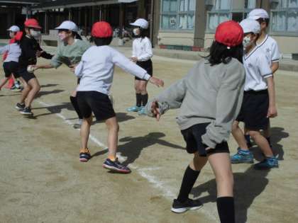 2年生最後の体育ではパティンテロをしました。