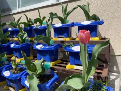11月ごろに植えたチューリップもつぼみができて,花が咲いていました!