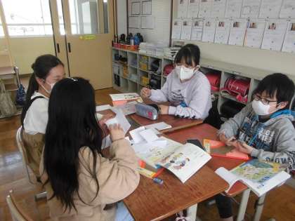 6年生の国語科「つないで,つないで,一つのお話」の学習の様子です。