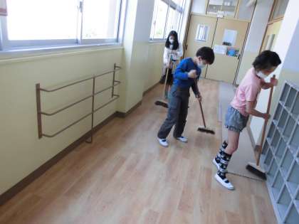 教室だけでなく他の場所の掃除にも懸命に取り組んでいます。