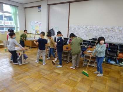 先生がもどると,もうすでに1列目の机が運ばれていました。