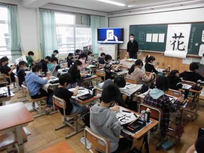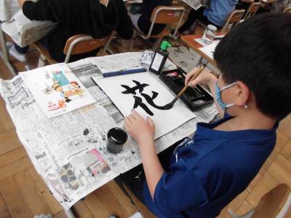 「花」を書きます。みんな集中して取り組んでいました。