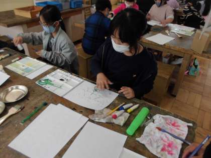 いろんな用具を使って自分のお気に入りの模様をつくります。