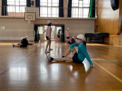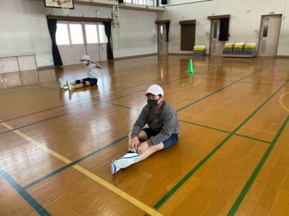 まずは,自分たちが知っているストレッチでゆっくり体をほぐします♪