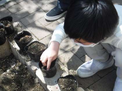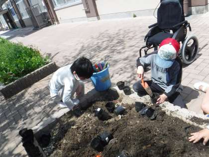 イエローポップは,ポップコーンにするトウモロコシです。そらいろのみんなが大好きなポップコーンです。去年は,種を担任たちでまきましたが今年は,みんなで種まきをしました。明日から水やりが楽しみです!