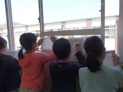 理科の学習では,雲の様子や天気の移り変わりについて,実際に同じ方角の空を定期的に観察してワークシートに記録しています。
