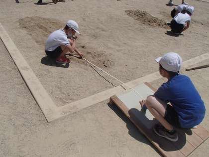 友だちどうしで声をかけ合って,記録の取り方や場の整え方を確認しています。