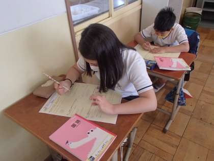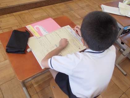 新しい単元の学習が始まる前には,プリントを使って4年生の復習をしています。「あーこれ覚えてる!」「えーと何やったかなぁ。」とつぶやきながら,学習の準備をしてます。