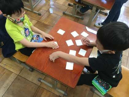 この前はブロックのカードを使った数比べでしたが,今日は数カードを使った数比べです。