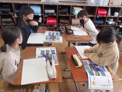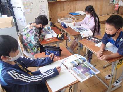 教科書の写真資料を見ると,「山ばっかりだと住むのに大変じゃないのかな。」「住宅が集まっているところは平らな土地が多いね。」など,気になることがどんどん溢れてきました。