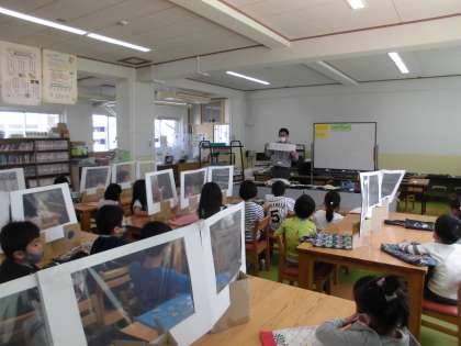 最初に,図書館の先生から,本の借り方の指導をしていただきました。