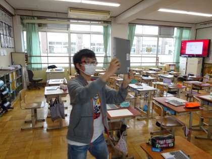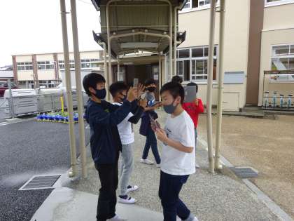 そのために,まず学校内を回って,タブレットで写真を撮りました。