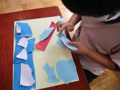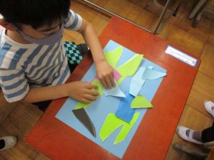 場所が決まったら,動かないように,落ちないように,のりで貼っていきます。