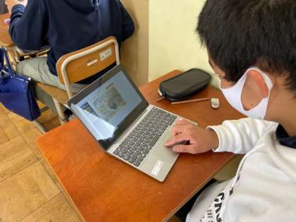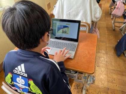 子どもたちは,タイピングのレベルアップしていくソフトをつかって単語を打っていました♪