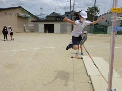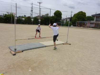 次の体育が最後の高跳びなので,みんな一生懸命です。