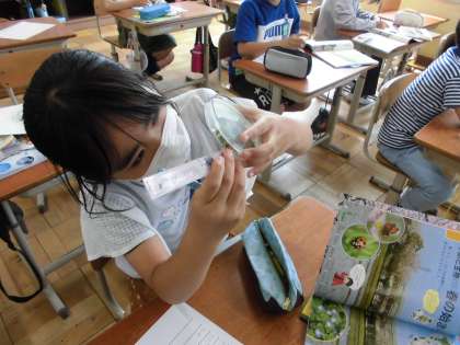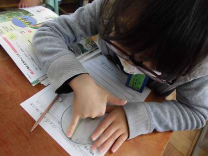 大きさは定規で測る子もいれば自分の小指と比べている子もいました。