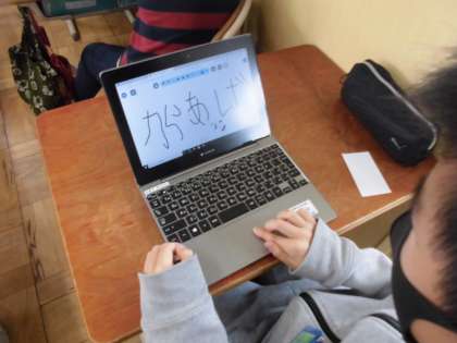 タブレットに打ち込んだことを全体の画面に転送します。