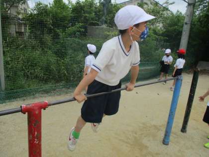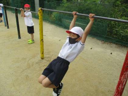 てつぼうあそびで,いろいろな技に挑戦しました。