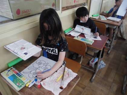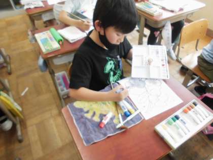 図工では,絵の具を使いました。