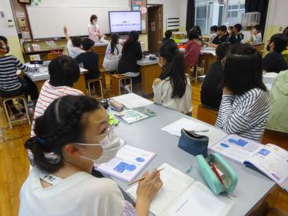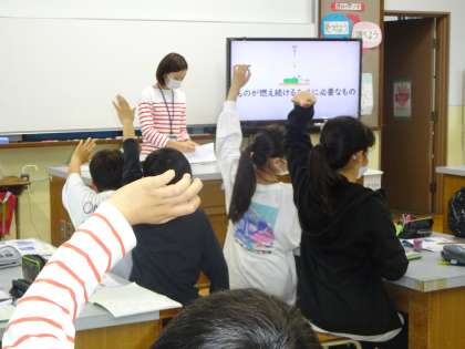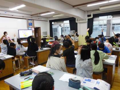 理科のテスト前の確認では,たくさん手を挙げ,発表していました。