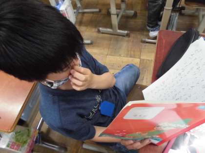 今日はそれぞれが作った3場面のお話を,友だちと読み合いました♪
