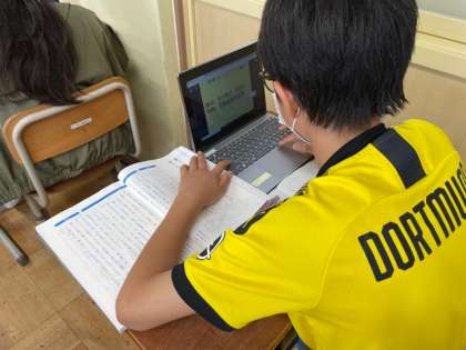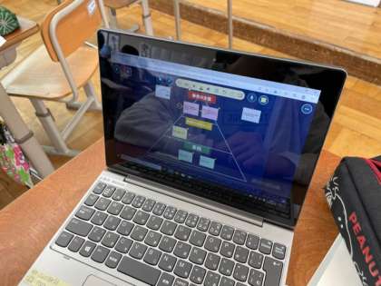 説明文の構成を確かめながら,ピラミッドチャートをまとめています!