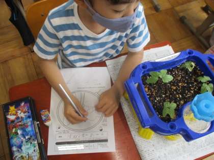 1年生活 「あさがおの芽が出た!1」