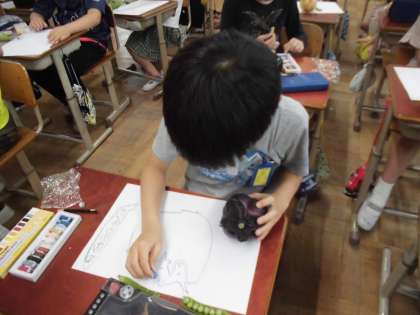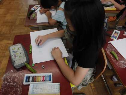 ほかのクラスでも,野菜の下描きをしていきました。