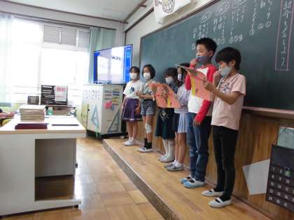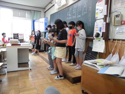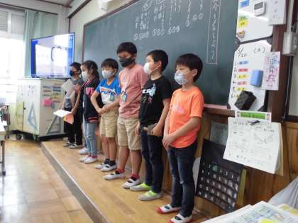 自分たちで調べたクラブの情報をクラスのみんなに伝えます。
