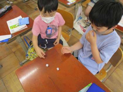 「7はいくつといくつ」で学習したことを,サイコロをつかって復習しました。