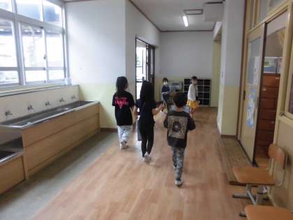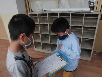 2年生といっしょに,学校を探検しています。