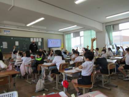 ALTの先生との英語は,テンションが上がる子供たち。