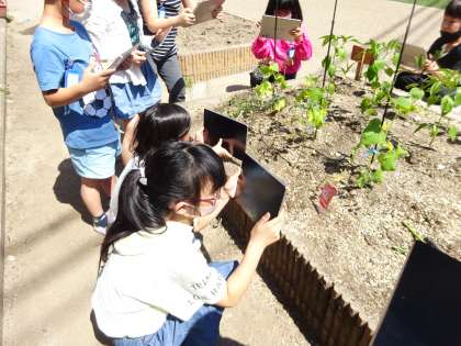 キュウリの苗の観察をしました。