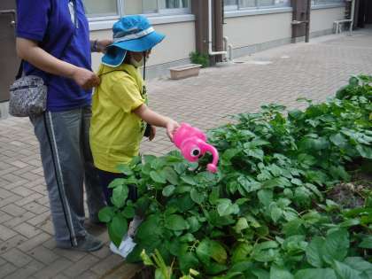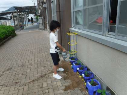 今日もたっぷり水やりをしました。2年はミニトマト3年は大豆も育てています。