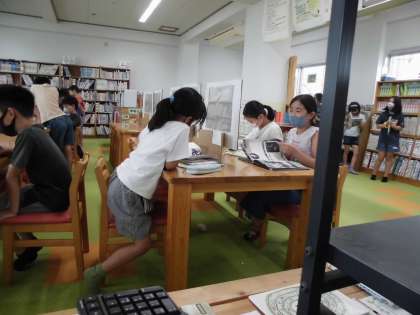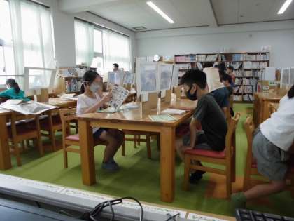 図書館で借りた本を静かに読む子どもたち。