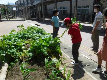 今日は,ジャガイモの収穫をしました。いつもより少しはやく今年は,収穫しました。最初に抜き方のお話を聞いて順番に抜いていきました。