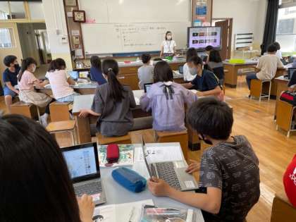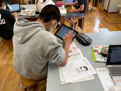 理科でもタブレットを使って調べ学習をしていました。