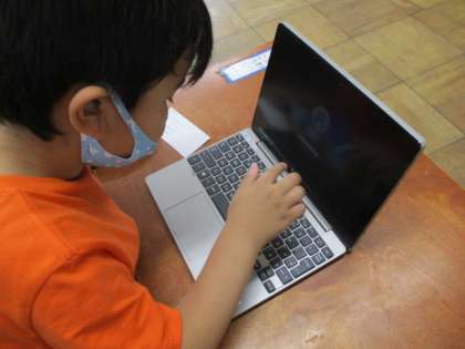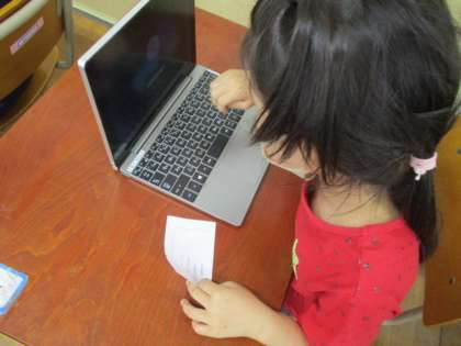 自分の番号とキーボードを一生懸命見比べながら,入力していました。