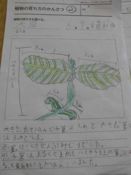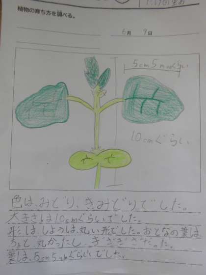 子葉という言葉も新たに学習し,カードに書きました。