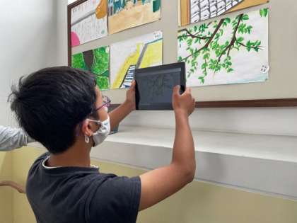 子どもたちは,友達の作品を写真に撮って隅々まで見ながら鑑賞していました!