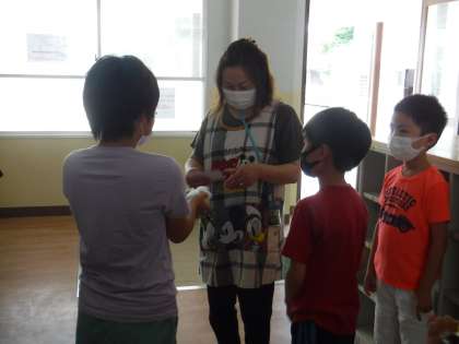 そらいろの子どもたちは,大宮の中でたくさんの教職員の方に見守られています。「いつもおいしい給食をありがとうございます!」「学校をきれいにしてもらってありがとうございます!」「いつもやさしく声をかけてもらってありがとうございます!」とメッセージを添えました。